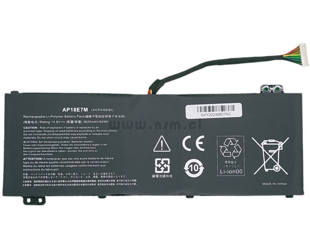 Bateria OEM ACER AP18E7M Aspire 7 A715-74 Nitro 5 AN515-54 5 AN517-51 Nitro 7 AN715-51 PREDATOR HELIOS 300 PH315-52 PH317-53 Predator Triton 300 PT315-51 Series 54Wh - Compatible con AP18E8M - Calidad Original