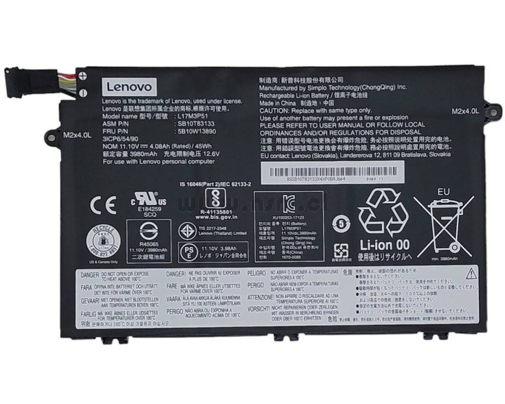 Bateria OEM LENOVO L17M3P51 SB10T83133 SB10W13890 45Wh - Compare bien con la bateria que viene de fabrica, ya que formato puede ser distinto