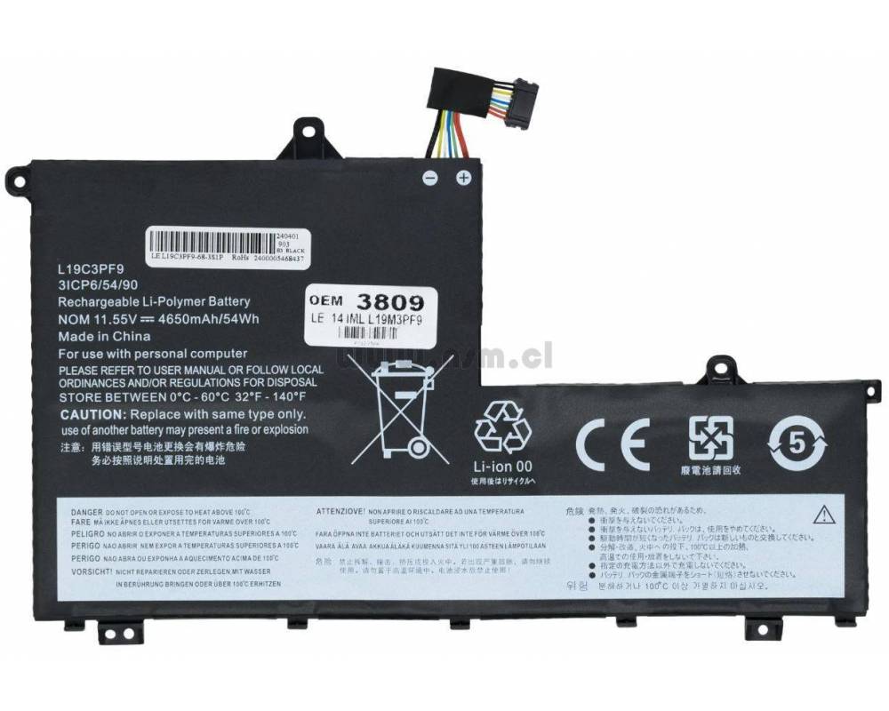 Bateria OEM LENOVO L19C3PF9 ThinkBook 14-IML 14-IIL 15-IML 15-IIL Series 54Wh - Compare bien con la bateria que viene de fabrica, ya que formato puede ser distinto - Calidad Original