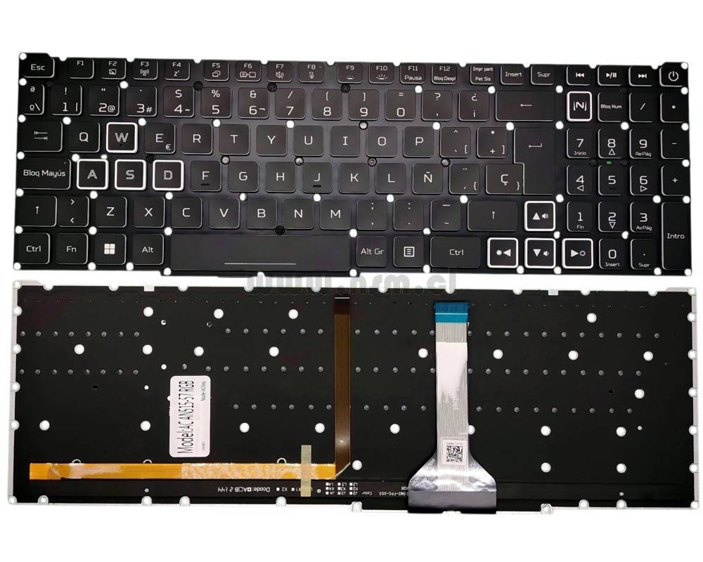 Teclado Español Negro ACER Nitro 5 AN515-57 AN515-56 AN515-58 AN517-54 AN515-46 AN517-47 Series - Retroiluminado RGB - Verificar ancho del conector (hay 2 versiones)