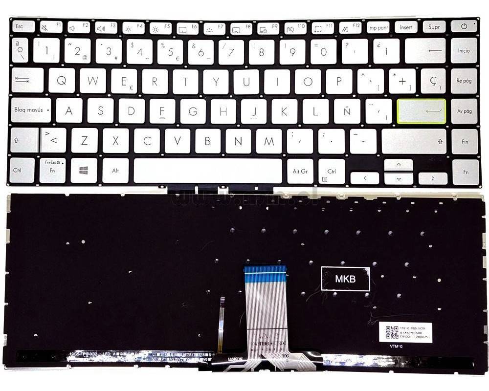 Teclado Español Plata ASUS X413 X413E X413EA X413F X413FA X413J X413JA X421E X421EA X421F X421FA X421IA M413D M413I M413IA D433 D433I D433Ia S433E S433EA S433F S433J S433I Series - Con Retroiluminacion