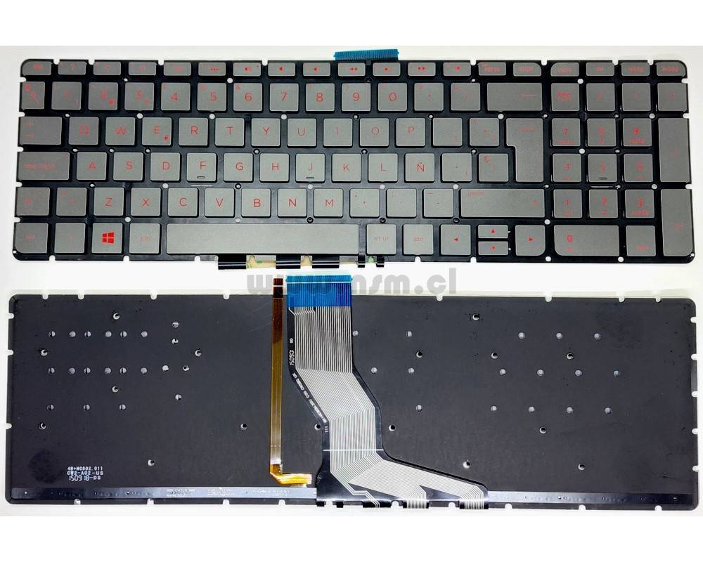 Teclado Español Gris Rojo HP Omen 15-ax 15-ax000 15-ax100 15-an 15-an000 Series - (Si su Enter es lineal y no tipo L, este teclado sirve pero debe adaptar la grilla superior)